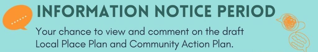 The Information Notice period is a statutory requirement for a minimum 28-day period where local councillors and community councils adjacent to the boundary of the Local Place Plan have a chance to make representations about the draft LPP. The steering group have also taken the decision to go beyond this statutory requirement and use this period to also consult the whole community on the proposals that have been developed.